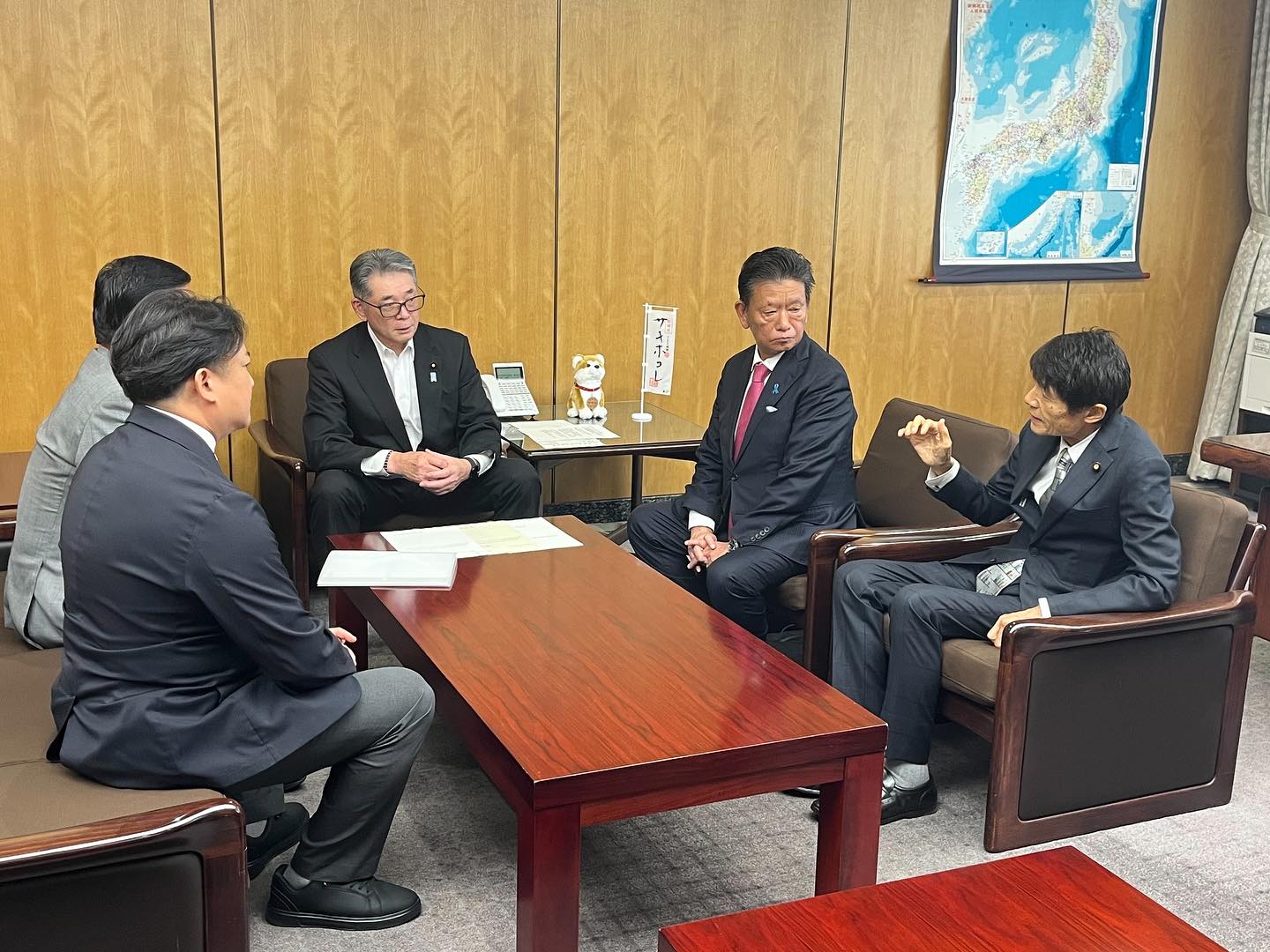 投稿日:2025年10月13日 白岡市庁舎火災の復旧で要望 10月10日、白岡市庁舎火災の復旧に関する要望で、三ツ林裕巳先生・藤井栄一郎市長・大島勉市議会議長と共に冨樫博之総務副大臣を訪ねました。完全な復旧までには早くて3年の期間を要することが想定されるため、特別交付税などでしっかり費用の確保をお願いし、冨樫副大臣も深い理解と後任への確実な引き継ぎをする意向が示されました。